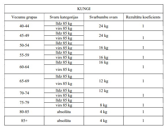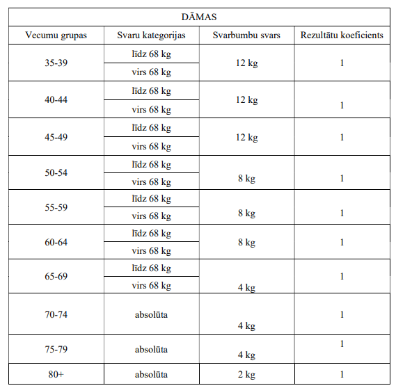 🏋️ Svara un vecuma kategorijas